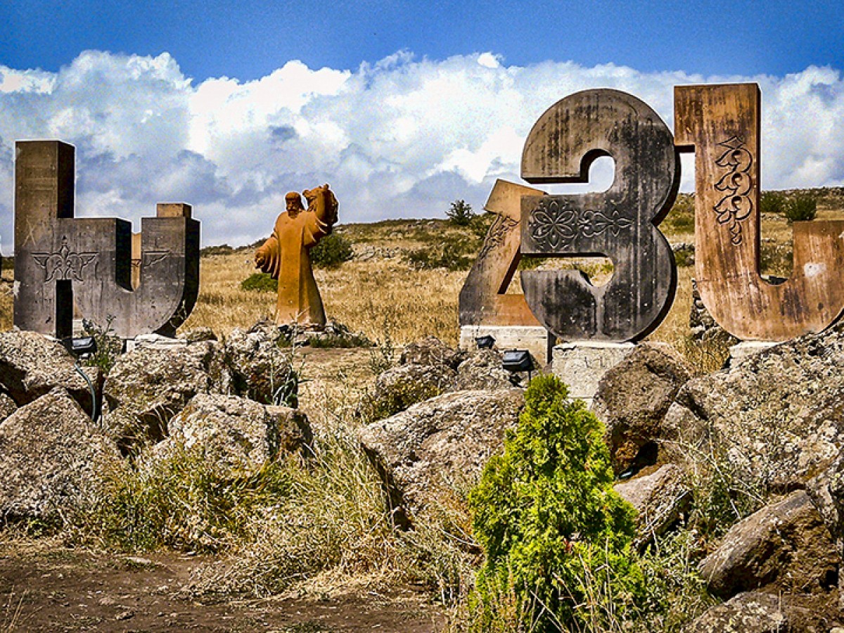 From SAGHMOSAVANK we will move to the LETTER GARDEN. This is a new monument which was built a decade ago, but it very quickly became one of the most favorite places of locals and the tourists around the world. It is devoted to the modern alphabet of Armenian Language created by St. Mesrop Mashtots in 405. Here, besides the letters of the Armenian Alphabet, you can also see the statues of medieval Armenian great thinkers.